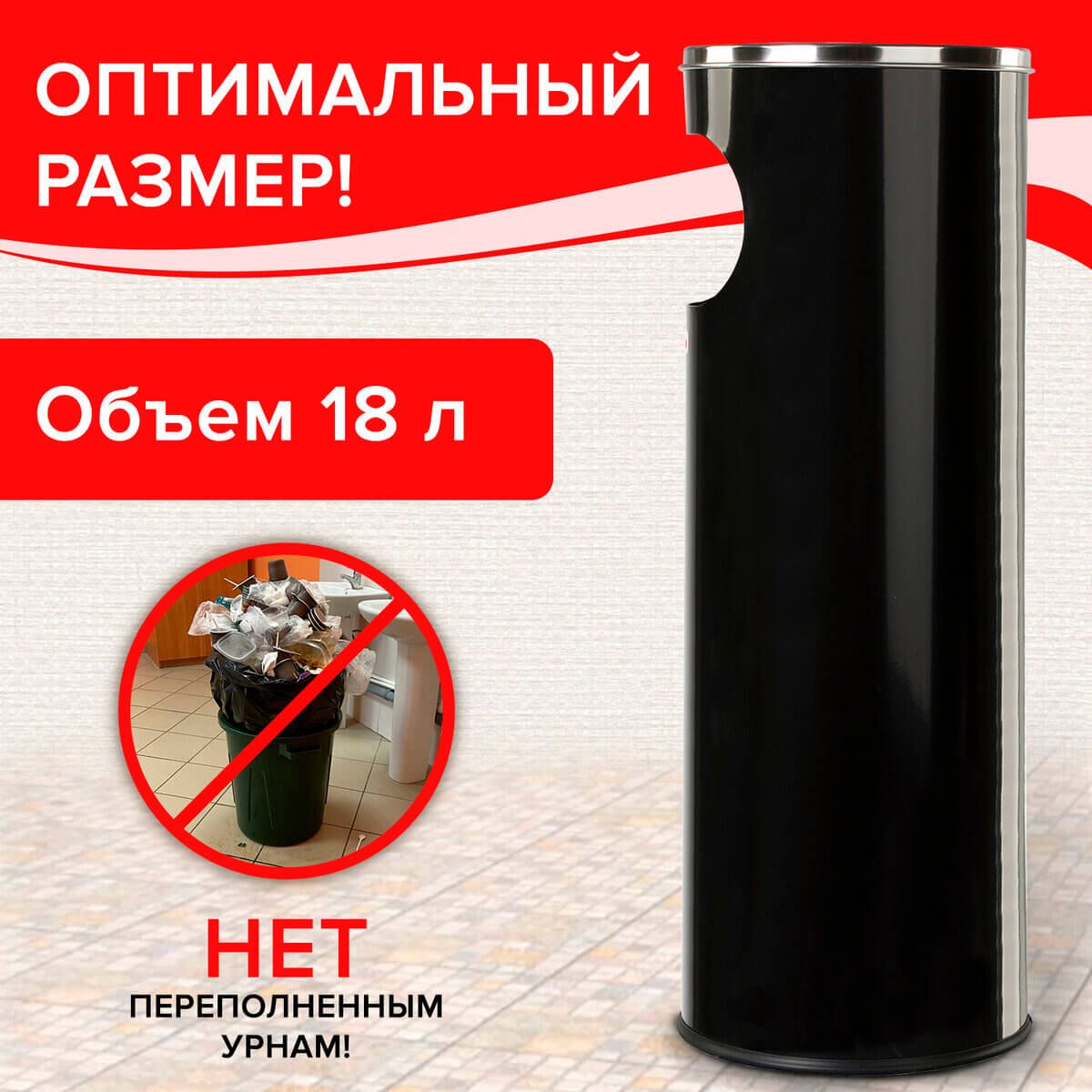 Урна с пепельницей 18 литров, нержавеющая сталь, черная, LAIMA PROFESSIONAL в Зеленодольске
