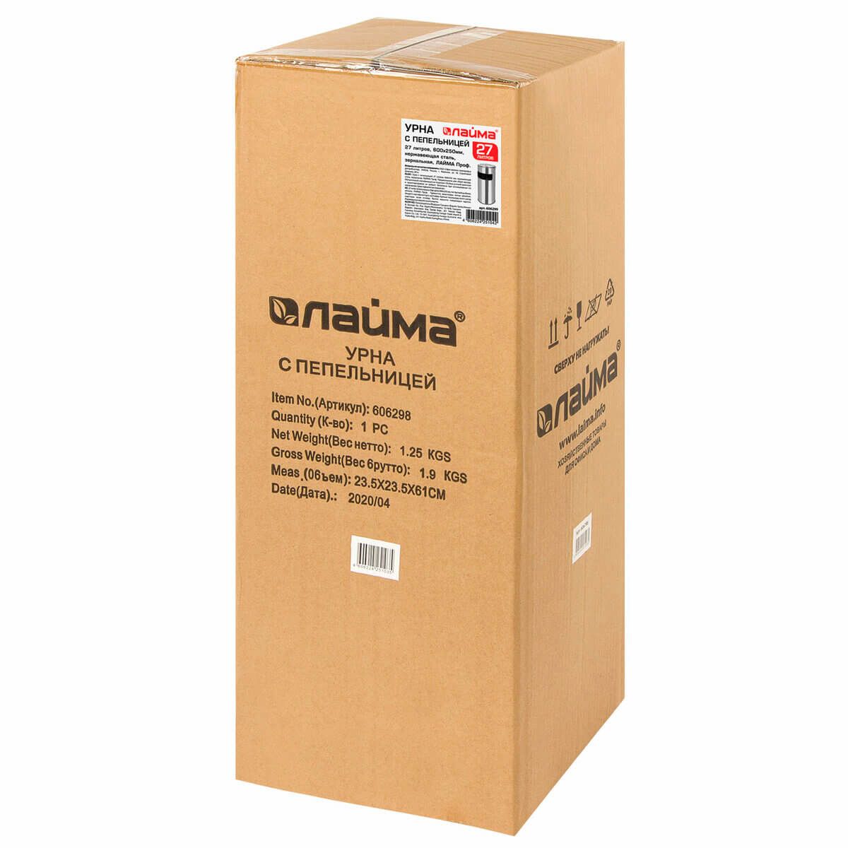 Урна с пепельницей 27 л, нержавеющая сталь, зеркальная, LAIMA PROFESSIONAL в Зеленодольске